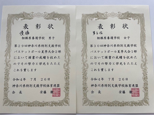7月26日にギオンアリーナで特別支援学校バスケットボール夏季大会が行われ、女子は、少ない人数で奮闘、1部で6位に入賞しました。男子は、練習がほぼできない状況の中、抜群のチームワークで、2部で優勝しました。おめでとうございます。