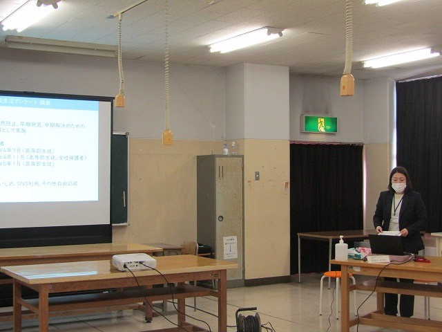 また、学校評価部会においては、進路支援班と教育相談班の取組みについて報告があり、その後年間運営計画の評価や、保護者、教員、放課後等デイサービスの学校評価に係るアンケートの集計結果から、総合的に評価がなされました。