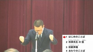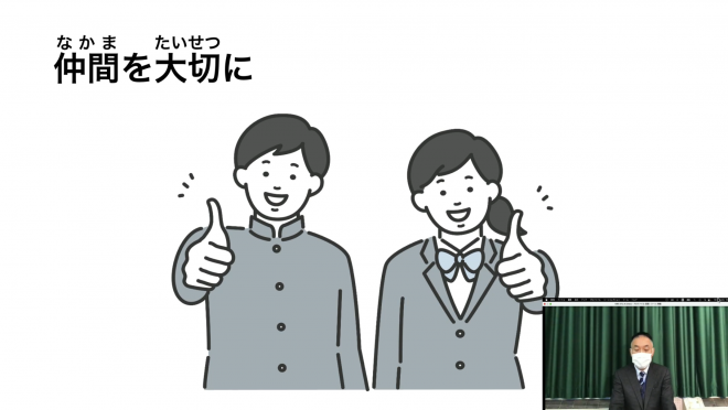 校長先生の話では、児童・生徒に向けて、学校生活で頑張ってほしいことを3つ伝えました。