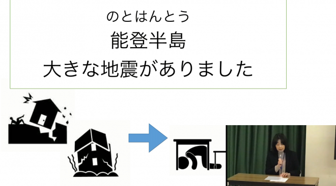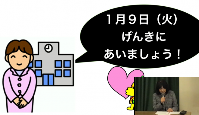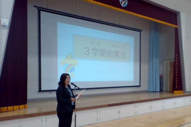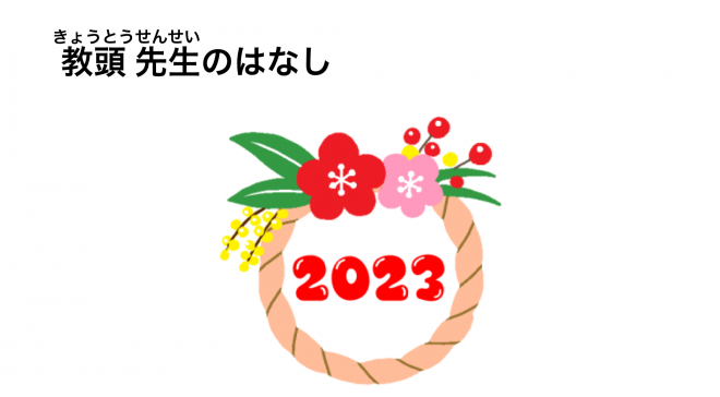 少し長い冬休みでした。楽しい思い出をクラスで発表してください。また、大きな地震があり、たくさんの人が亡くり、ケガをしました。自分の身を守る訓練は大切だと思いました。