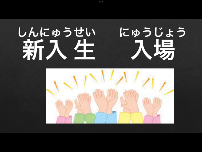 午後は小・中学部の入学式。続いて高等部の入学式が行われました。小学部1年生、中学部1年生、高等部1年生のフレッシュな児童生徒が入場すると大きな拍手で迎えられました。