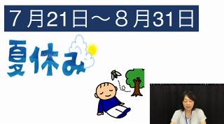 夏休みは楽しい思い出がたくさんできるといいですね。早寝早起き、お手伝いも頑張りましょう。