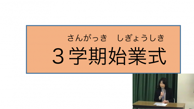 3月25日、今日で3学期は終わりです。修了式は中学部と高等部は体育館。小学部はライブ配信をみて参加しました。