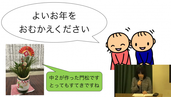 かわいい門松は中学部2年生が作りました。1月9日から3学期が始まります。げんきにあいましょう。