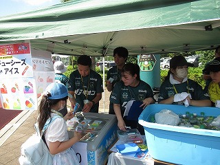 ブースボランティアでは、飲み物やアイスの販売、射的コーナーを担当、ギオンの社員さんと接客について確認をしながら、来場者に対し丁寧に笑顔で接することができました。