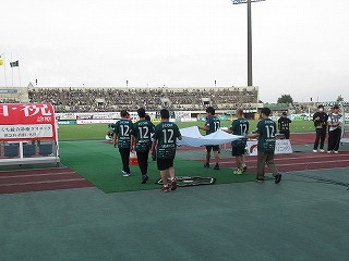 フラッグベアラーとして、多くの観客が見守る中、選手を誘導してピッチに入場する大役を果たすことができました。