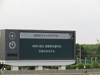 3月4日(土曜日)にギオンスタジアムで「SC相模原」の開幕戦が行われ、本校高等部の生徒9名がボランティアとして観戦グッズの配布とフラッグベアラーの活動に参加しました。