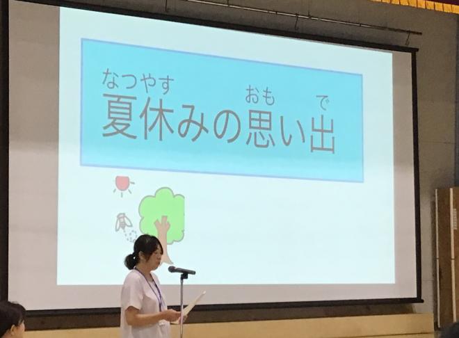 2学期がスタート!始業式では、校長先生が夏休みで楽しかったことを話してくれました。