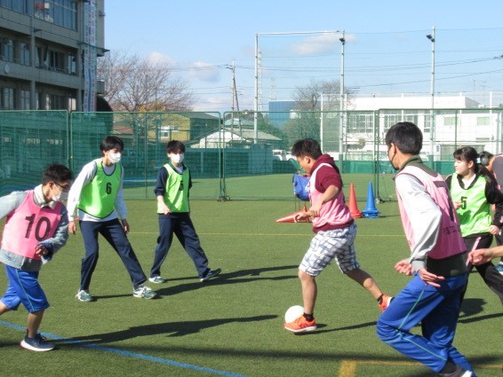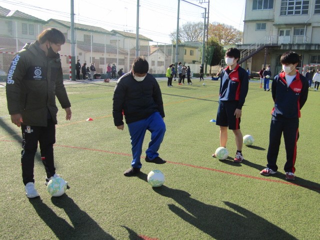 12月12日(月曜日)に光明学園相模原高等学校のグラウンドで、高等部2年生と、光明学園相模原高等学校フットサル同好会の皆さんが、フットサルを通して交流しました。