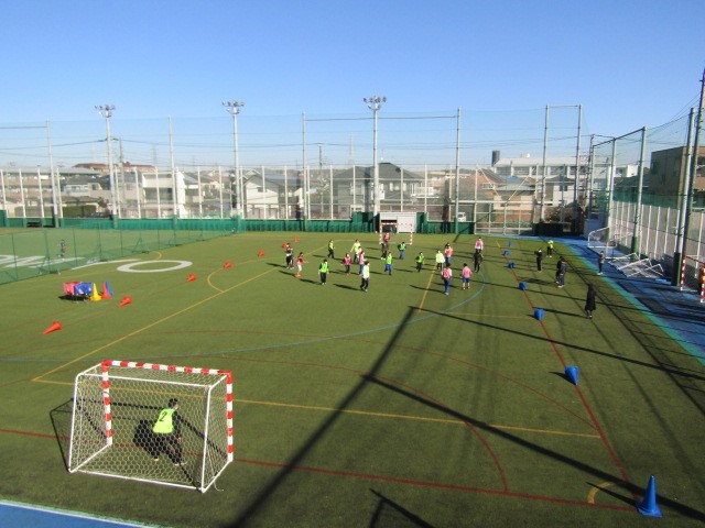 交流は、LONDRINA(ロンドリーナ)のコーチの皆さんを講師に迎え、グループに分かれてウォーミングアップをしてから、パスやシュートの練習をし、最後に両校混合チームで試合を行いました。