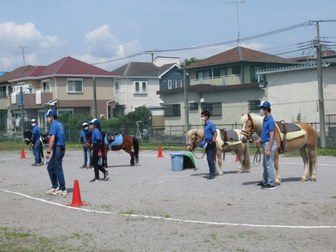 6月3日、今年度で4回目となるポニー乗馬・ふれあい体験が、公益財団法人ハーモニィセンターのご厚意で行われました。児童・生徒たちはかわいいポニーに興味しんしん。かっこよくポニーにまたがったり、少しびくびくしながらも近寄ってニンジンをあげたりと、いろいろな表情を見せていました。経験を積んで、よりふれあいを深めることができました。ポニーさん、職員の皆様、また来年度も来てくださいね!