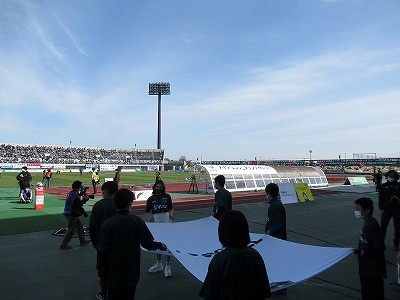 生徒からは、「とても緊張したが、普段活動できないことを体験することができてよかった」、「自分から行動できたと思う」「スタジアムの熱気や気持ちのいい風に包まれて仲間と行動を共にするのは楽しいと改めて感じた」等の感想を聞くことができました。