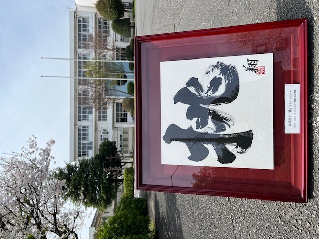 いろいろなことにチャレンジする児童・生徒たちに力を与えてくれる作品です。 寄贈していただいた千葉昭夫さん、ありがとうございました。児童・生徒の昇降口に飾ってありますので、書からパワーをもらって、どんなことにも挑戦していきましょう。