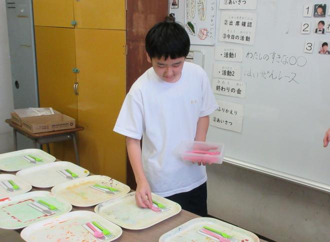 7月18日、学年集会で夏祭りを行いました。クラス対抗戦としてヨーヨー釣りや射的、ボッチャで競いました。みんな全力で楽しんでいました!結果は1組が優勝し、トロフィーと表彰状を高等部学部長から受け取りました。