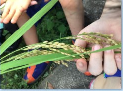 9月11日、猛暑を経て、ついにバケツ稲に稲穂が実りました!稲穂を見て笑顔が見られたり、緑の稲が黄色に変わった事を確認したり、稲穂の感触を楽しみながら観察をしました。みんなで種から育てたバケツ稲、いよいよ来月収穫ができそうです。