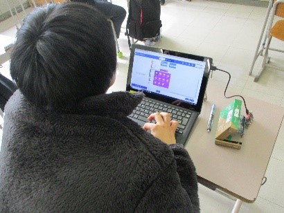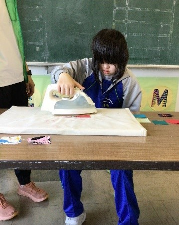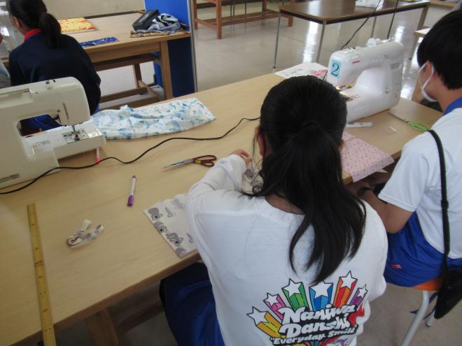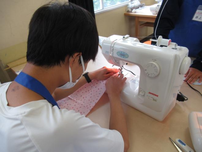 11月15日、家庭科の授業で巾着袋を作りました。ひもを購入することから始めて、それぞれデザインを決めました。アイロンを使うと、ご家族が使っている様子をよく見ているようで、とても上手に扱っていました。そして、ミシンを使っていよいよ縫い合わせです。とても落ち着いて操作をしていました。上手に布を引いたり、針を下ろしたりする生徒の姿を微笑ましく見守る教員たちでした。