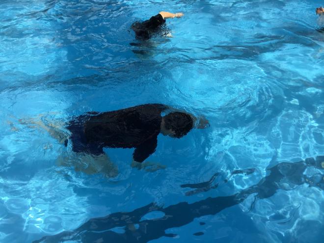 9月12日、今年度2回目のプールに入ることができました。昨年度は1回も入ることができなかったのもあって、今回もみんなの楽しみにしている様子が朝から伝わってきました。水に顔をつけたり、ビート板を使用したバタ足、クロールの練習をしたあとは、お楽しみです。水中宝探しをしたり、フロートの上に乗ってゆっくりくつろいだりしました。高校生活最後のプールを満喫できた一日となったようです。