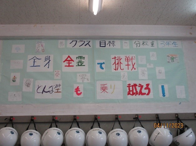 4月11日、クラス目標と1学期の個人目標が完成して、教室の後ろに掲示しました。高校生最後のクラス目標は「全身全霊で挑戦 どんな壁も乗り越えろ!」となりました。個人目標では、それぞれの持つ課題と向き合い、しっかりとまとめて記入しました。
