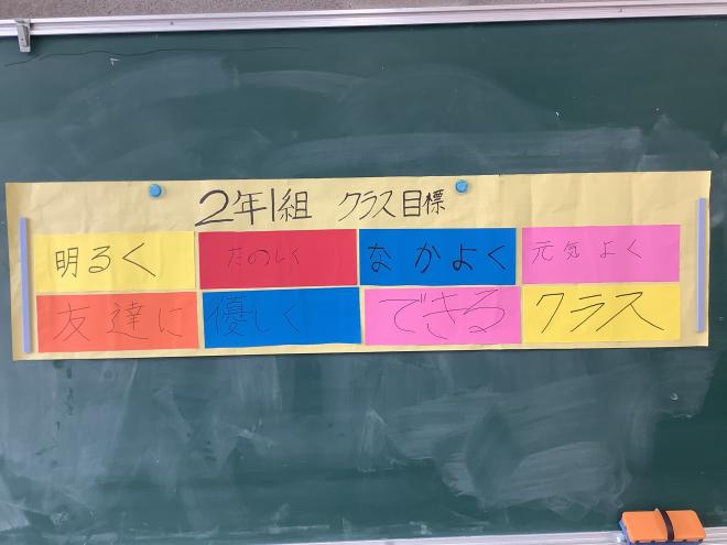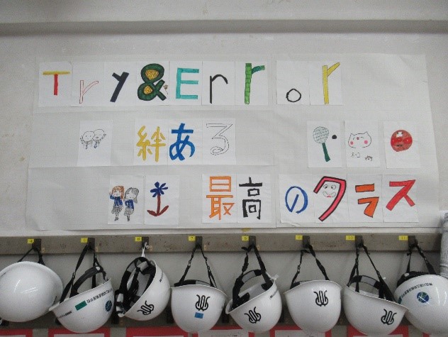 4月18日(火曜日)、1年生のクラス目標が完成しました。「Try&Error 絆ある最高のクラス」全員がクラス目標にしたい言葉を一つずつ出し合い作成しました。