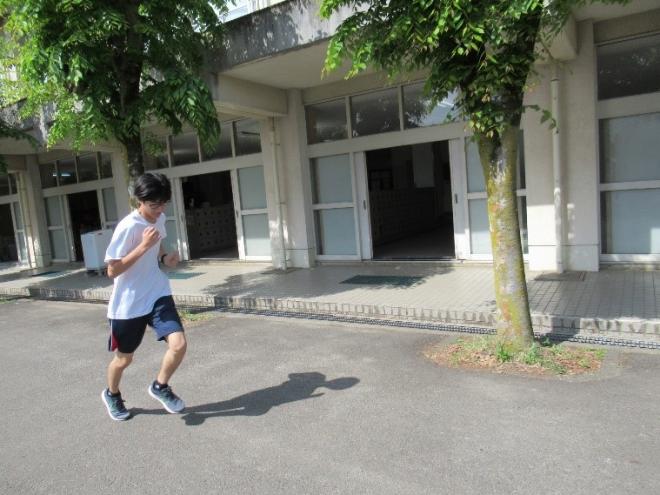 5月25日、今日の体力づくりは持久走です。最近、少しづつ暑くなってきているので、無理はせず、水分補給と着替えも忘れずに走っています。走り終わった後は少し疲れるけど、心地よい爽快感にひたっています!
