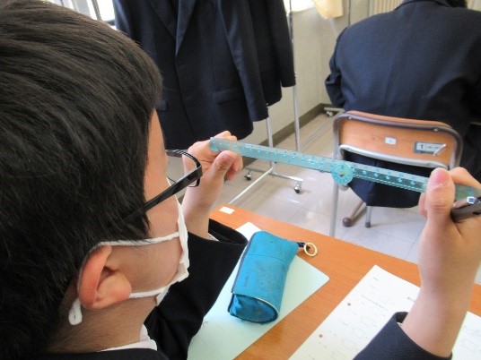 5月2日、数学の授業では、重さや長さの学習をしました。重さを量る課題では「これは何キロ?何グラム?」とクラスでは様々な意見が出て、どうしてそう考えたのか、互いに確認しながら答えを出しました。長さを測る課題では、定規の細かいメモリをよく見ながら測ることができました。