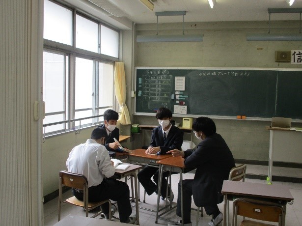 4月10日、LHRの時間にクラス目標を作りました。『挑戦し 笑顔感謝を忘れないクラス』という目標をみんなで考えました。生徒達が話し合って決めた目標が素敵ですね。春休み明けで話したいことがたくさんあり、休憩時間にはみんなで楽しく談笑しています。