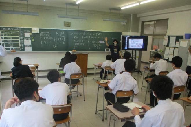 9月8日、金曜日の国語・数学は1年生~3年生の縦割りの4グループに分かれて学習をしています。それぞれのグループで生徒の個性に合わせた特色のある学習を行っています。1年生たちにとっては、2年生や3年生をお手本とすることで、より意欲的に学習することのできる機会となっています。