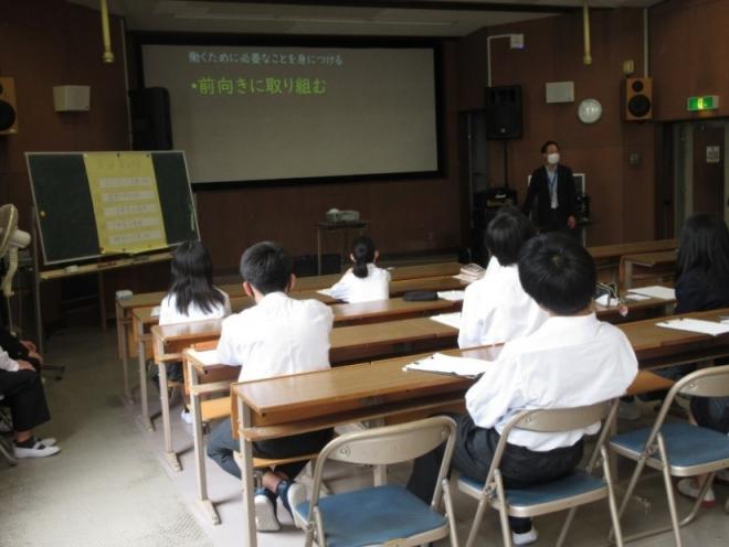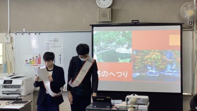 6月1日、産業現場等実習(現場実習)に向けて2・3年生の実習激励会を行いました。実習先の説明や実習目標をスライドにまとめ発表しました。とても緊張している様子でしたが、大きな声で伝えることができました。2年生では、ほとんどの生徒が1人で現場実習を行います。実習を経験して、社会に出た時のイメージができるといいですね。2年生!がんばろう!
