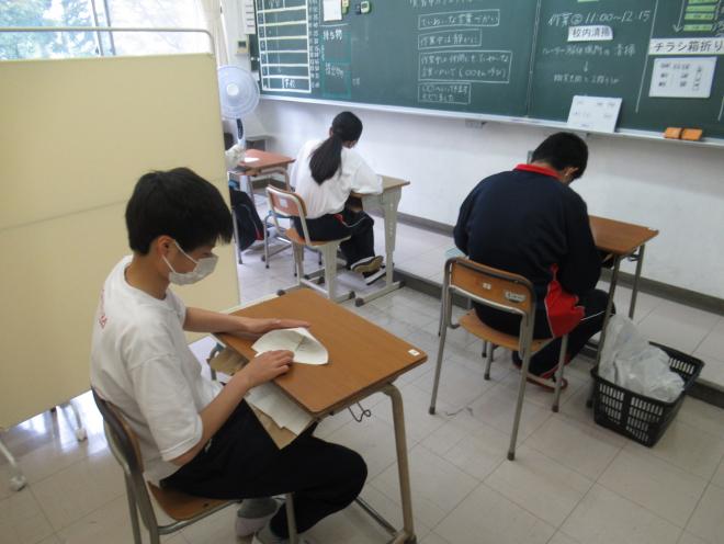 6月5日から始まった校内実習・現場実習も残り1週間となりました。広告折りの作業は小さく折ってポケットティッシュに入れます。どこかで配られるのですね。箱折りの作業は某有名ホテルのクッキーのようです。どんなクッキーが入れられるのか興味がわきます。残り一週間みんなで協力して校内実習がんばろう!