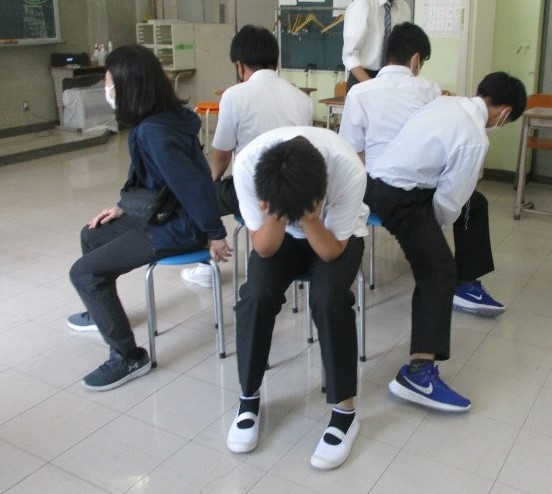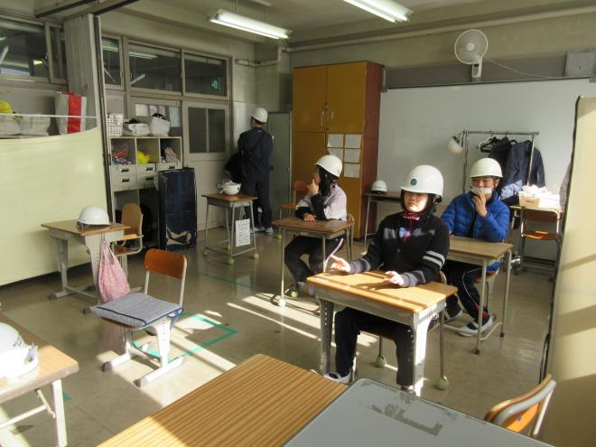 11月21日、震度6強の地震から出火を想定した避難訓練を行いました。非常階段を使って前庭に避難する訓練を行いました。非常階段を使った避難訓練は初めてでしたが、落ち着いて避難することができました。