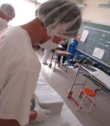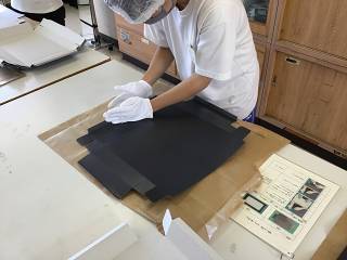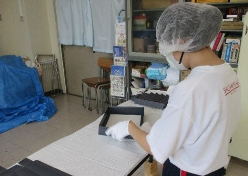 某横浜のホテルの箱折り作業。丁寧な作業を心がけます。先生たちの検品も慎重に行います。校内実習は10月20日まで行います。がんばれ~!