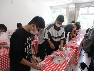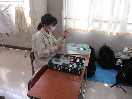 10月16日(月曜日)から1年生の校内実習が始まりました。先週から実習を行っている先輩から作業について説明を聞いてから始めました。慣れてくると、報告・連絡・相談の声も大きくなってきました。