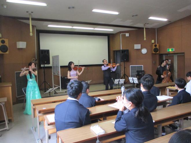2月19日(月曜日)に、中学部でゲストティーチャーとしてシンガーソングライターの岩崎 けんいち氏を本校にお呼びし、「愛をご馳走しまShow~みんなで歌おう!」コンサートを行いました。岩崎さんの掛け声に合わせて歌ったり、笑顔で身体を揺らしたり、手拍子をしたりとそれぞれに楽しんでいました。最後には、立ち上がって踊る生徒もいるなど全身で音楽を感じていました。生徒たちにとっても、とても貴重な機会となりました。岩崎さんありがとうございます。