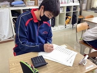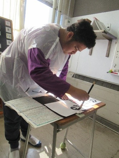 1月18日、中学部2年生は書初めを行いました。今年の干支の「たつ」をテーマに思い思いに新年の熱い気持ちを文字に乗せて書きました。筆を握り、半紙を見る目が皆ととても真剣だったのが印象的でした。
