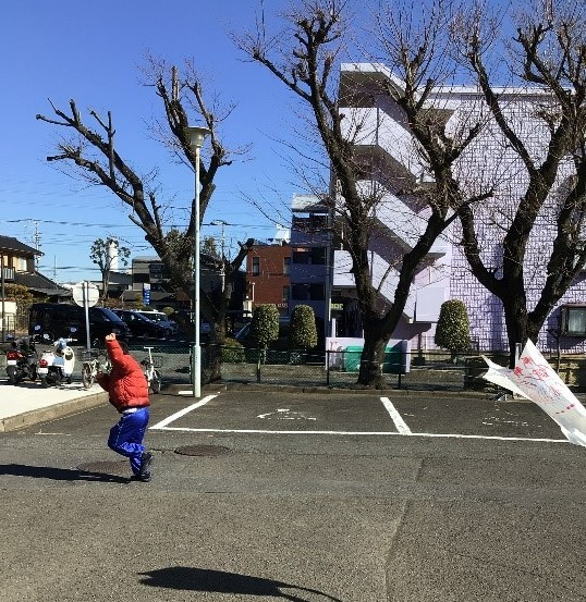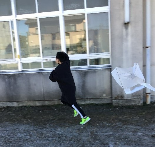 1月26日の生活単元の時間にたこあげを行いました。生徒たちはグラウンドで目一杯走りながら前の時間に絵付けをしたたこを上げて楽しそうに遊んでいました。