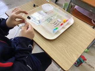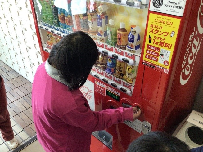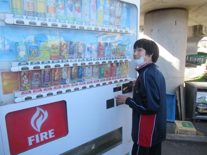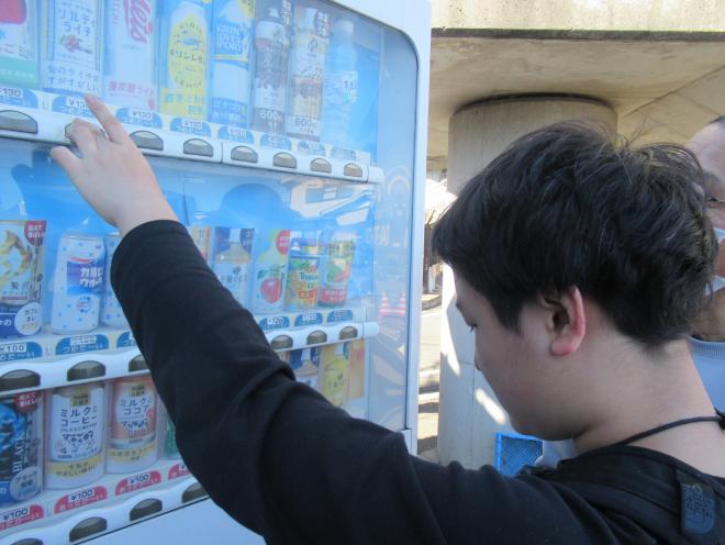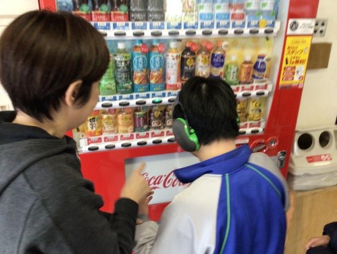 12月12日の生活単元の時間に買い物学習を行いました。今回は学校内の自販機を使いお茶を購入しました。生徒たちは硬貨を入れて、自販機のボタンを押して無事に商品を購入することができました。