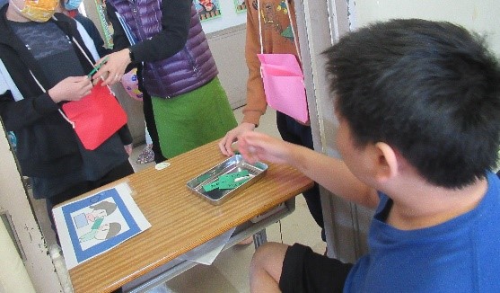 4月28日、生活科で学校探検を行いました。保健室や職員室、校長室へ行き、シールを貼ってもらいました!