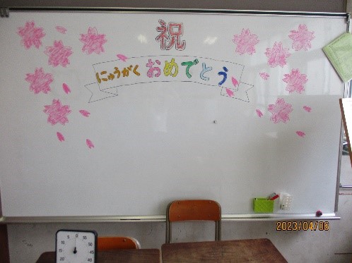 4月5日に入学式を終え、元気いっぱいな1年生が入学しました。廊下も装飾がたくさんで、にぎやかな雰囲気です。これから3年間よろしくお願いします!!