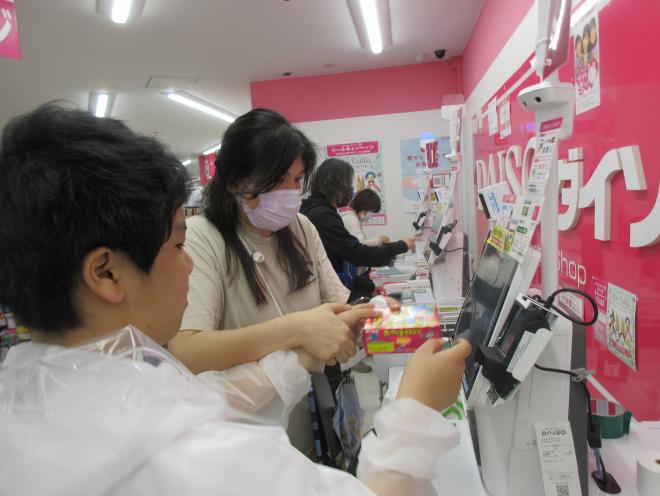 6月9日(金曜日)、雨も上がり、晴れ間が出た午後。生活単元の授業で原当麻駅前のDAISOへ買い物に行ってきました。今回の買い物は、自分の好きなものを買うのではなく、皆で授業で使う“決められたモノ”を買うという課題です。お菓子など多くの誘惑が陳列されている中、誘惑に負けずに、目的のモノを必死に探す生徒たちの様子が印象的でした。