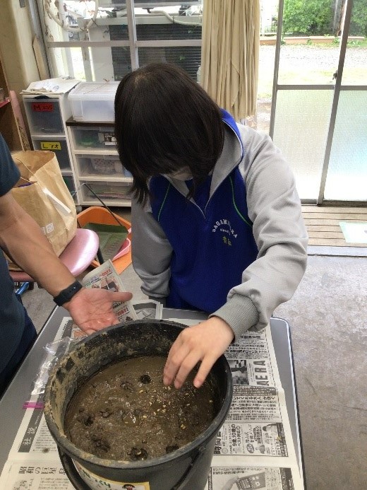 5月23日にバケツ稲の種植えを行いました。いつ芽が出るかと生徒たちはとても楽しみにしています。