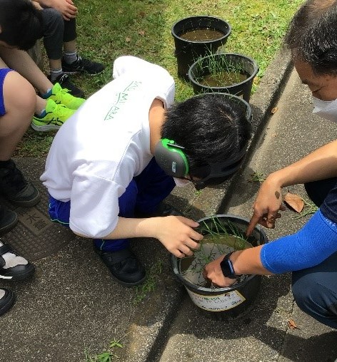 6月5日に稲の植え替えを行いました。種を植えてから、あっという間に青々とした新芽が生え、生徒たちは興味深そうに観察をしていました。これからも稲の成長を見守っていきます。