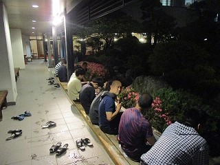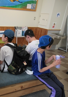 就寝前に男子はホテルの足湯に行きました。たくさん歩いた足を癒します。明日は最終日です。