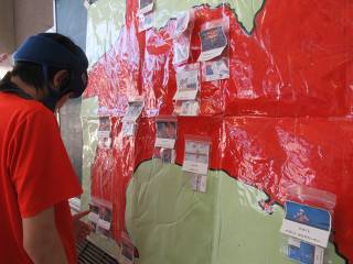 10月23日、中2の生活の授業では、“神奈川県を知ろう”という課題で神奈川県の「祭」、「特産物」、「レジャー施設」、「グルメ」について学習し、自分の興味関心の高いものを選んだり、選んだもののシールを自分の神奈川県シートに貼ったりしました。生徒それぞれ興味関心が異なり、様々な神奈川県のおすすめマップが出来上がりました。