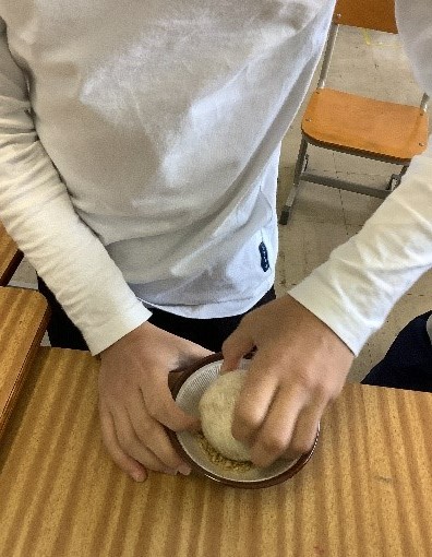 10月27日、いよいよバケツ稲も最終章に近づいてきました!今日は、脱穀と行いました。ボールとすり鉢で根気強くゴリゴリと・・・ みんなが見慣れたお米の姿を見て、指で硬さを確かめたり匂いをかいでみたりと思い思いに観察していました。次回は、精米を行い持ち帰る予定です。みんなで育てたお米の到着をお楽しみに!