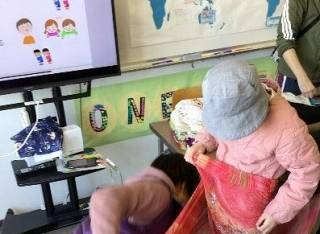 5月1日、音楽の授業でパネルシアターをしました!音楽に合わせて出てくる車にみんな釘付けになっていました!