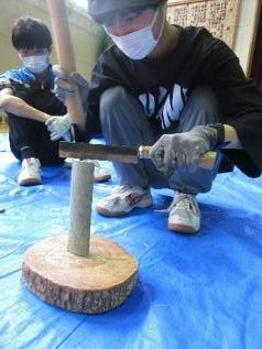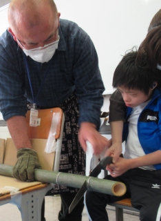 12月14日(木曜日)、中学部2年生は新年に向けて“門松づくり”の授業を行いました。土台の桶になる太い竹もみんなで力を合わせて一から竹引きで切り分けました。切り終わると、生徒も教員もみんなうっすらと額に汗をかいていました。
