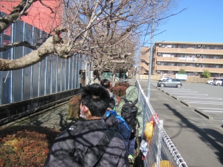 2月26日(月曜日)に校外歩行へ行きました。学校の近所の公園を目的地にして、生徒たちは一生懸命歩いていました。公園の近くでは早咲きの桜が咲いており、少し早めのお花見をすることもできました。