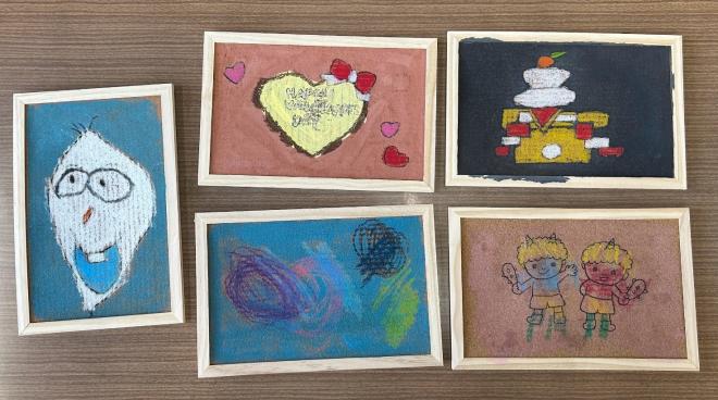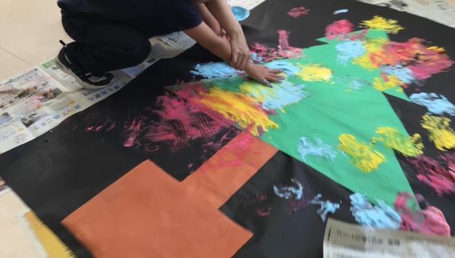 1年生初めての美術作品は、季節に合わせて色のイメージを創りました。