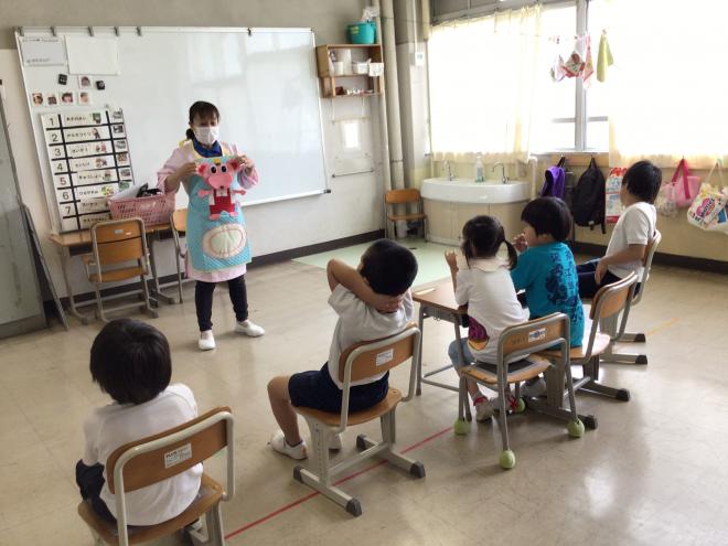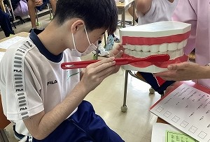 6月1日、歯科保健指導をしました。歯科衛生士さんがみんなの虫歯がないか確認したり、歯の磨き方を教えたりしました。クイズに答えたり、模型と歯ブラシで歯を磨いたりしました。歯を健康に保ちたいです!