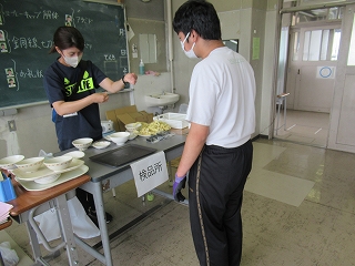 9月28日、宿泊学習の夕食で食べるカレーを作りました。ねらいは感染症に気を付けながら自分が食べる分を一人で作ることです。10月5日からの宿泊学習では野外でお湯を沸かして作ります。レトルトカレーですが、みんなで温めて食べるカレーは、また一味違うようで全員完食!片づけもみんなで協力して、シンクまできれいに拭き上げました。グッド、チームワークです!